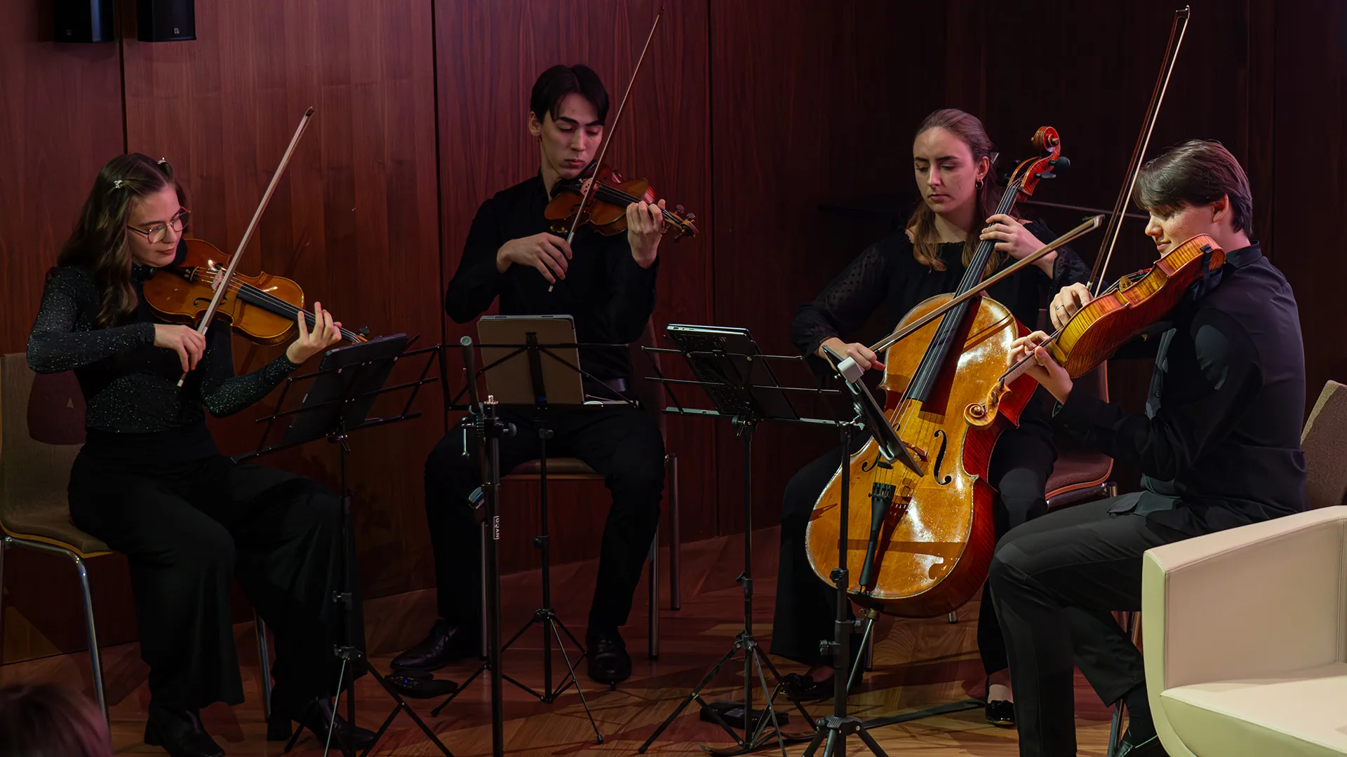 Compuesto por: Issey Martínez Imai; Giulia Cellacchi; Héctor Mira Ferriz y María Igual Devesa. Interpretará la pieza Despertar en la Bahía de Víctor Padilla, compositor, investigador musical y decano de la Facultad de Artes y Ciencias Sociales de la UNIR.