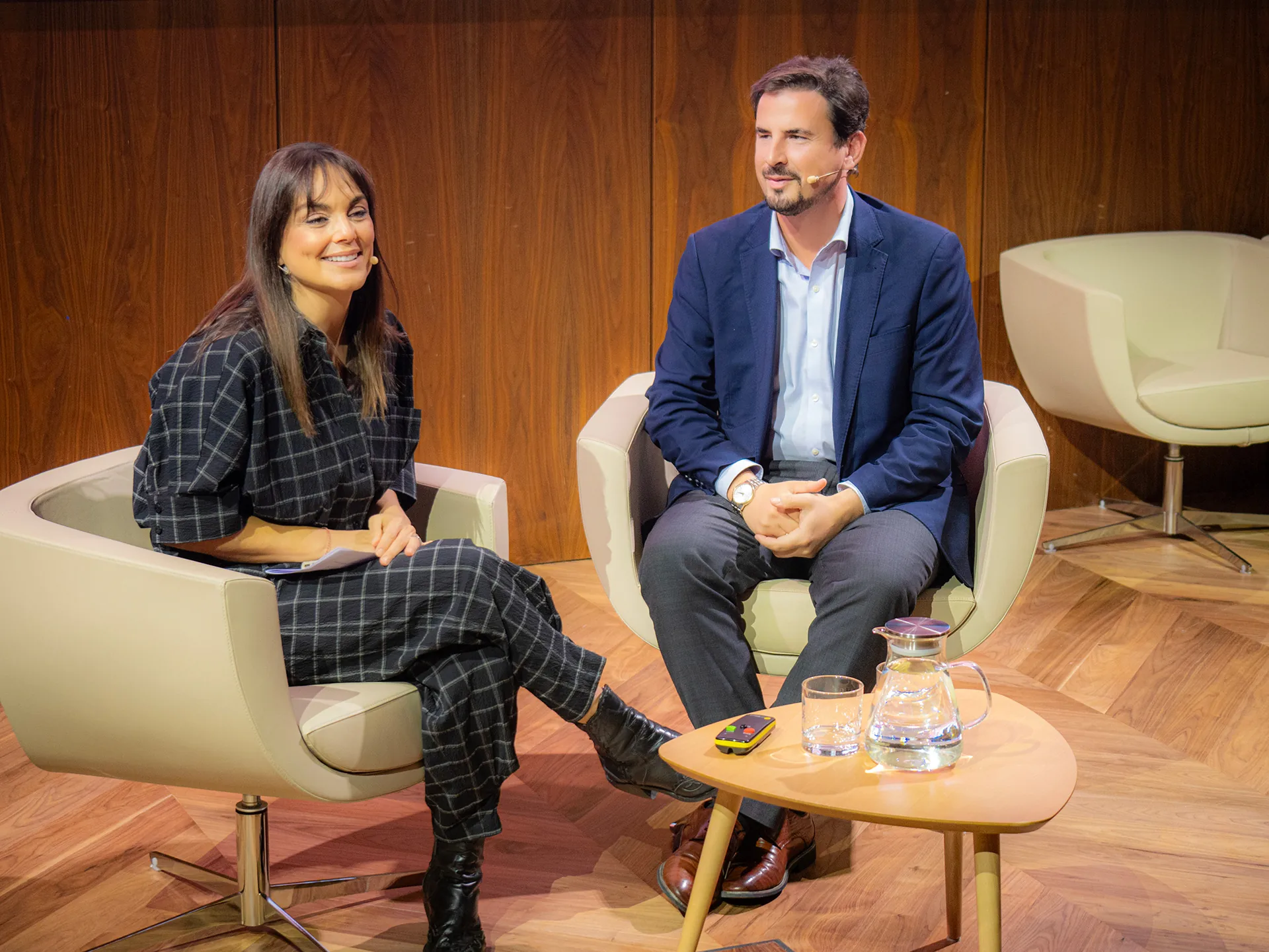 Modera Charo Izquierdo, periodista, con Susana Rodriguez Navarro, CEO y directora general Cantabria Labs en conversación con BOA MISTURA, colectivo artístico.